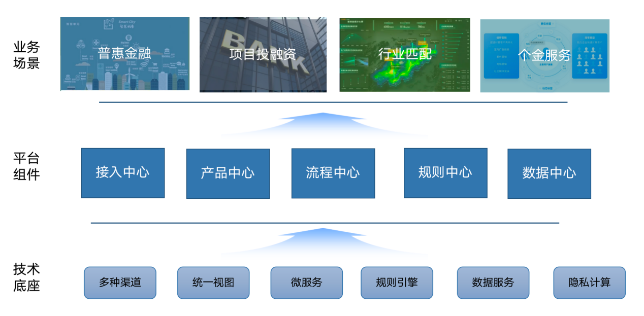 通過平臺的開放能力、多渠道能力,對中小微企業在融資過程中融資難、融資慢、融資貴、體驗差等四個方面進行突破創新。