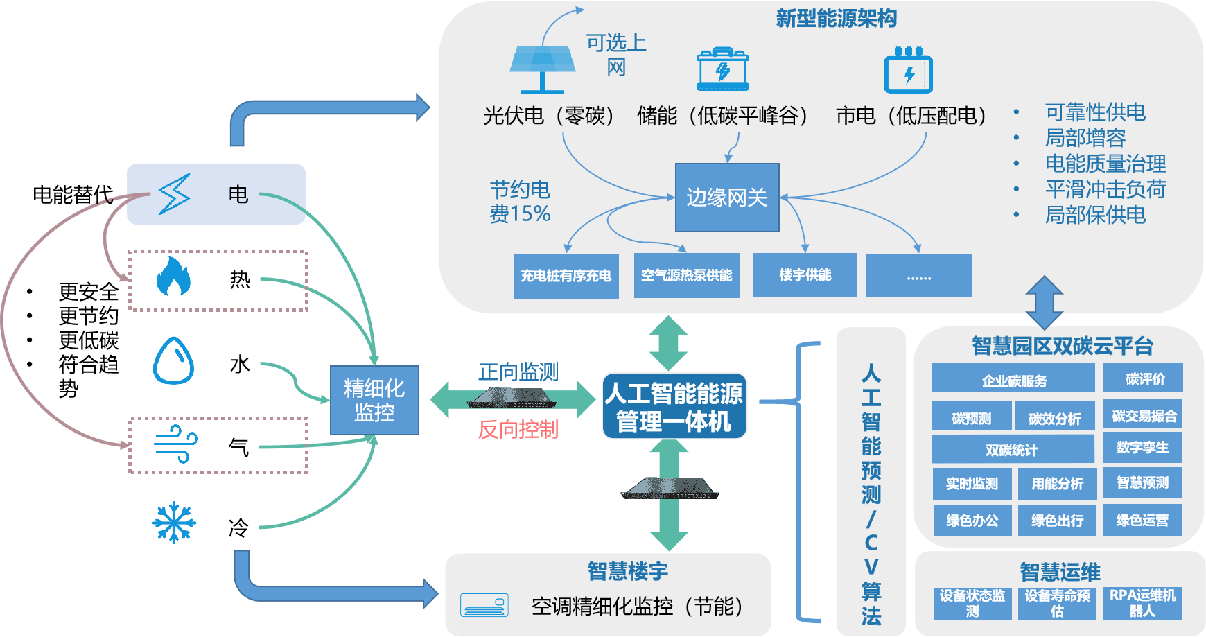 人工智能能源管理一體機是一款集智慧綜合能源軟件平臺、能源硬件設備于一體的智能設備,兩種尺寸,大機型226*800*600,小機型150*600*600。支持多種通信協議,滿足高性能并發、大容量存儲需求,實現傳統傳感采集、輔助控制、邊緣計算、視頻AI智能分析高效整合。